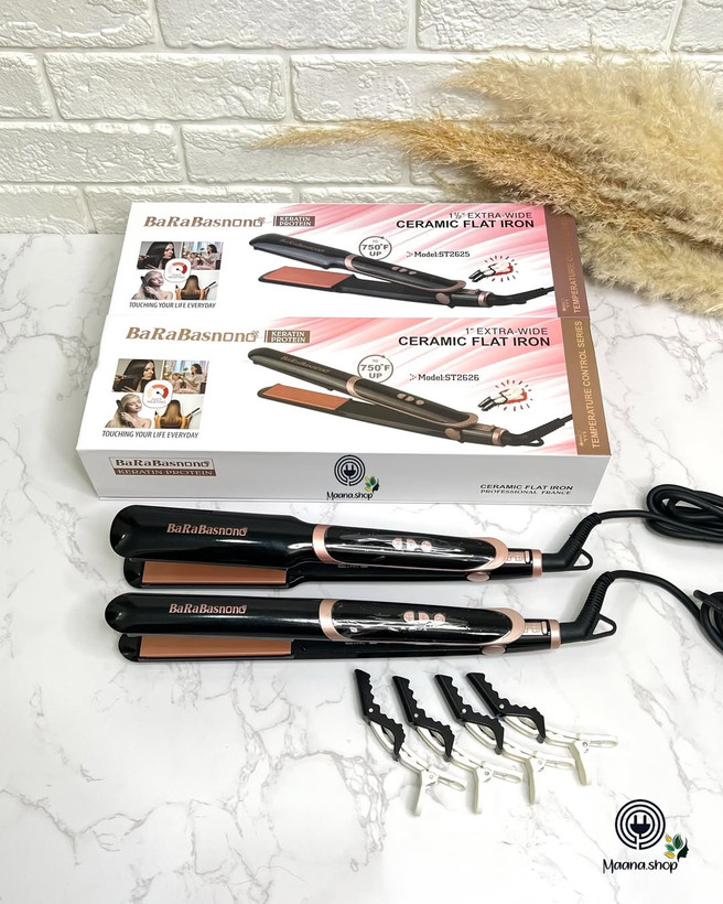 یه اتو مو که هم کامل لخت میکنه هم کیفیت و قیمتش عالیه😍 طراحی بدنشون هم جوریه که برای کرلی کردن فوق العادست🤌😍صفحش باریکش کرلی های متوسط میده و صفحه پهنش درشت🥰 این اتوی barabas nano پرفروش ترین و پررضایت ترین اتومون بوده ❤️ ویژگی های عالیش: ▪️قابلیت تنظیم دما تا 400 درجه ی سانتیگراد(750 درجه ی فارنهایت) ▪️جنس صفحات از سرامیک و کاملاً بدون آسیب ▪️دارای نمایشگر دمای LCD ▪️دارای صفحه ی المنت PTC برای رسیدن به حداکثر دما در کمتر از 60 ثانیه ▪️سیم چرخشی یا گردان 360 درجه ▪️مناسب استفاده سالنی،حرفه ای و غیر حرفه ای