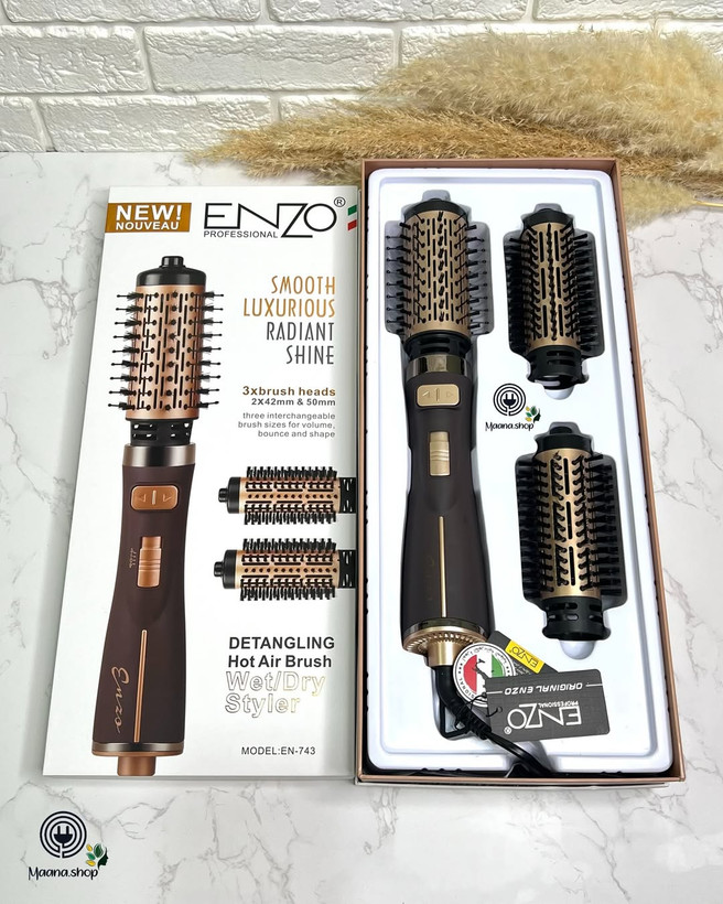 دیدن محصولات مرتبطدیگه براشینگتو خودت به راااحتی انجام بده😍 ینی رسماً از سشوار و برس پیچ و برس حرارتی و اتو مو خلاص میشی🤌😎😅 مناسب خانم ها و آقایون و همه اندازه مو👌🏼 ✅از برند ایتالیایی باکیفیت Enzo ( با کارت اصالت و ضمانت) ویژگی هاش😍👇 ▪️3 عدد برس پیچ داره که چرخشی هستن و ثابت هم میتونید استفاده کنید✌🏼 ▪️باد سرد و دو سرعت باد گرم داره😍 ▪️1500 وات واقعی ، 16 آمپر و 250 ولت(این ینی دوام و طول عمر بالا😍) ▪️چرخش در هر دو جهت ▪️برس پیج از جنس سرامیک و کاملا بدون آسیب ▪️کار باهاش خیلی راحته و مناسب انواع جنس و اندازه موهاست ▪️قابلیت استفاده تو خونه و سالن هم داره